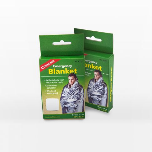 O cobertor de emergência da Coghlans é uma película térmica utilizada para resgates, emergências e para evitar a hipotermia, é confeccionado em polietileno laminado aluminizado que não deforma, é o mesmo utilizado pelo Corpo de Bombeiros.