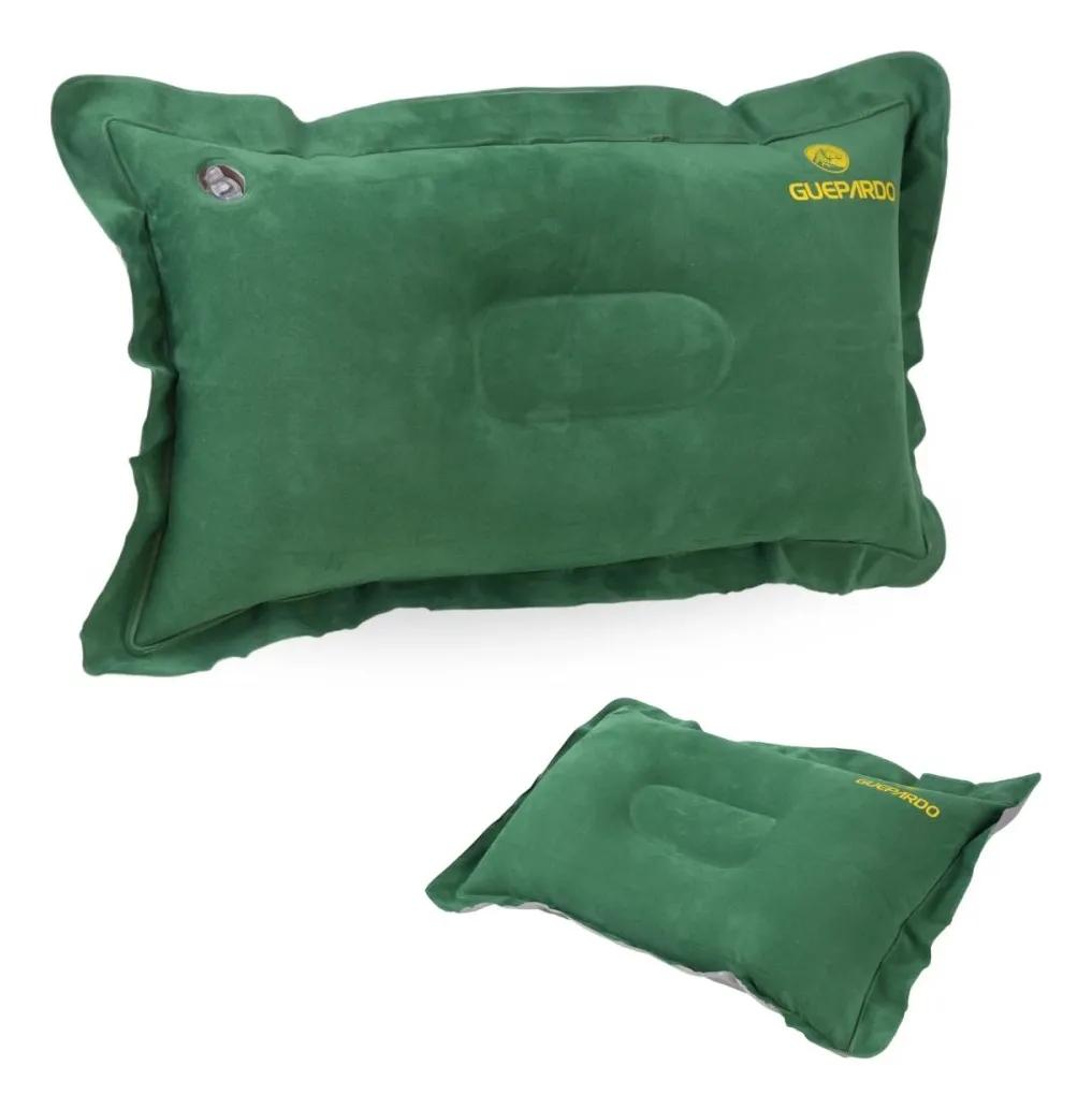 Almofada Travesseiro Smart Inflável Impermeável Verde Guepardo para Camping Pesca Passeio Viagem O travesseiro Smart foi desenvolvido para quem busca conforto imediato em qualquer aventura! Compacto, leve e fácil de transportar, ele infla rapidamente e oferece apoio anatômico, garantindo um descanso muito mais agradável. Seu material impermeável e resistente permite uso seguro em camping, pesca, praias, trilhas, viagens e passeios ao ar livre, sem preocupação com umidade ou sujeira. Com design prático e cor verde que combina com ambientes outdoor, é o acessório perfeito para completar seu kit de aventura. Especificações: :: Marca: Guepardo :: Cor: Verde :: Altura: 13 cm aproximadamente :: Comprimento: 50 cm aproximadamente :: Largura: 32 cm aproximadamente :: Não incluso: Bomba de ar :: Composição: PVC liso e flocado ultra resistente. :: Indicação e Uso: Ideal para garantir conforto em camping, pesca, viagens, trilhas e passeios ao ar livre.; Compacta, impermeável e fácil de inflar, oferece apoio ergonômico para descansar em qualquer lugar com praticidade e segurança. :: Medidas: Pesa 190g aproximadamente :: Observação: Impermeável; Base com sistema antiderrapante; Possui válvula para enchimento e esvaziamento rápido.; Formato anatônico Itens Inclusos: :: 1 Unidade Travesseiro Inflável Smart Guepardo Verde